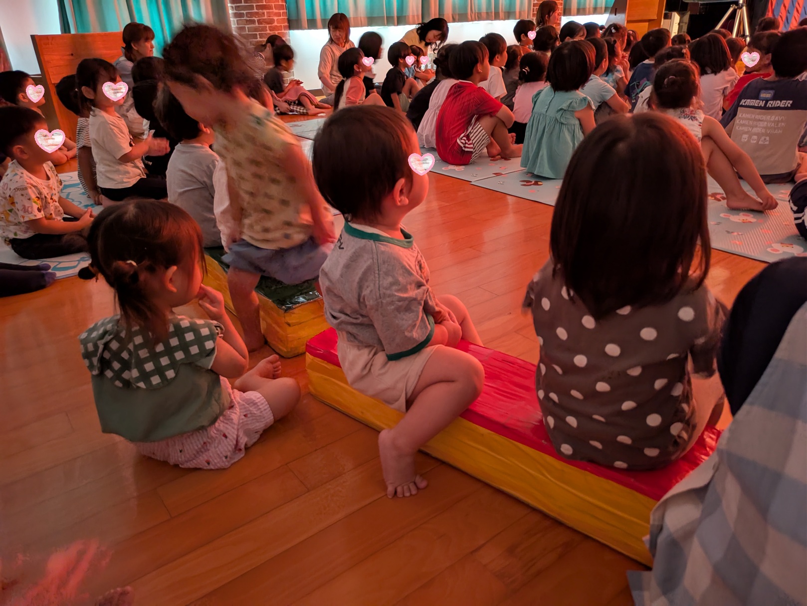 みんなそれぞれに声を上げたり笑ったりしながら見てます。