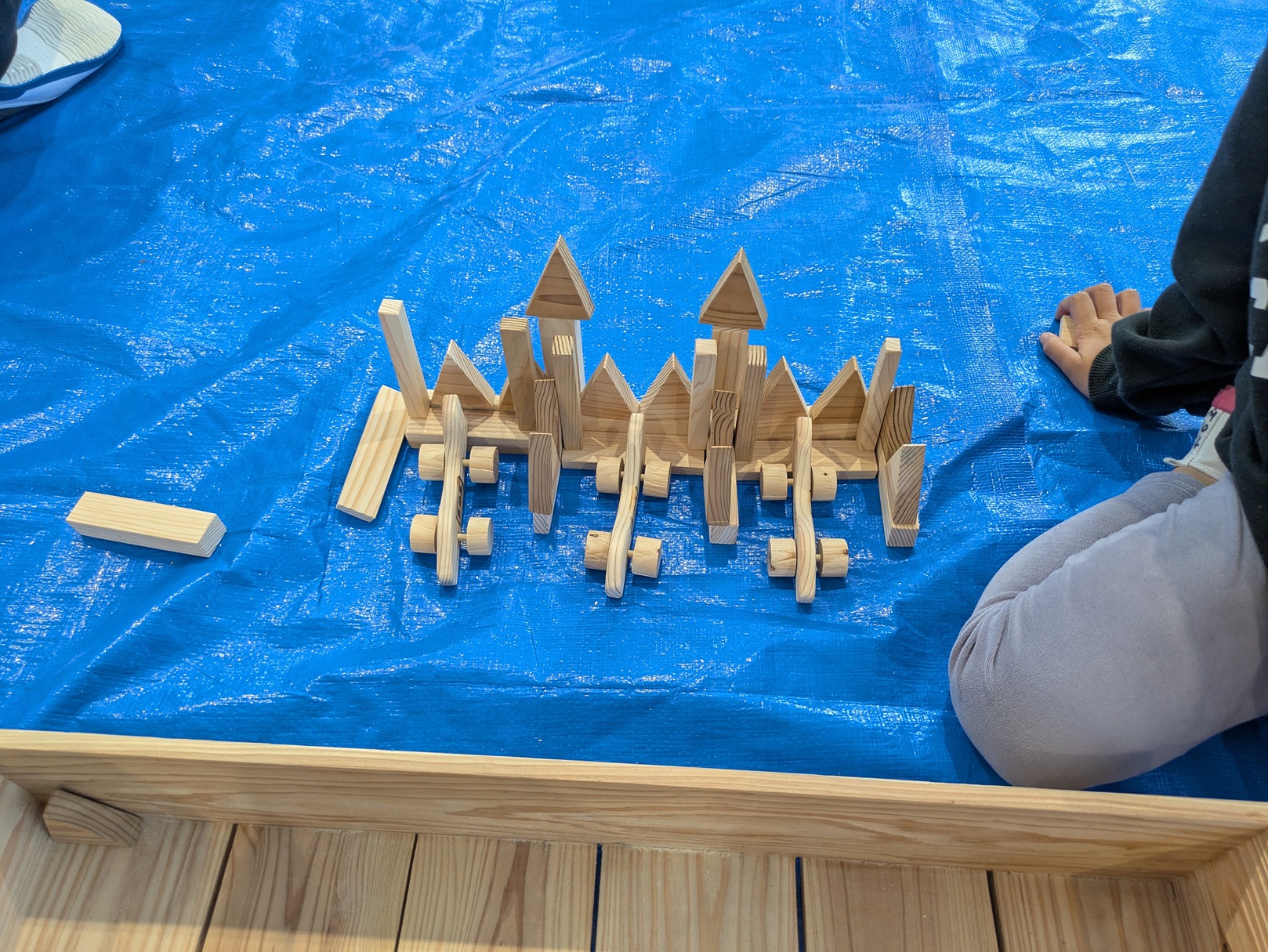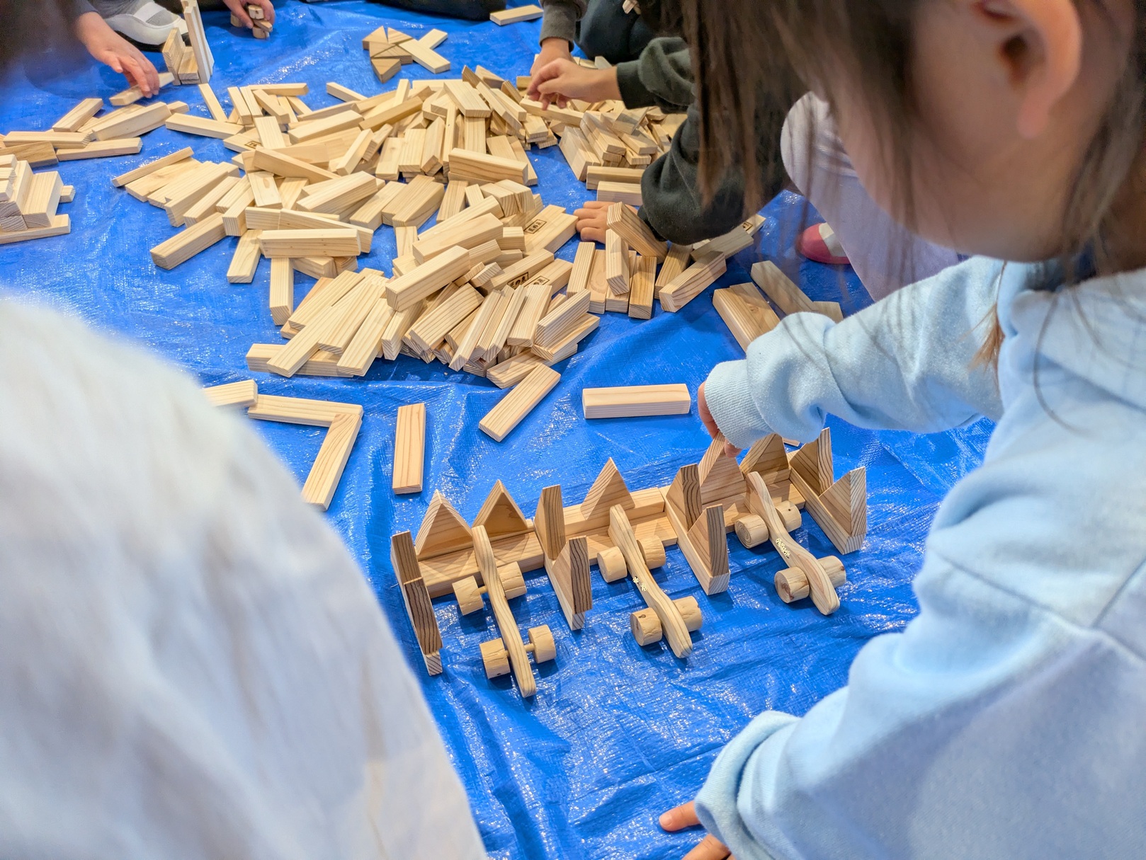 今回作った木製の車や積み木などを子どもたちに提供していただきました。
